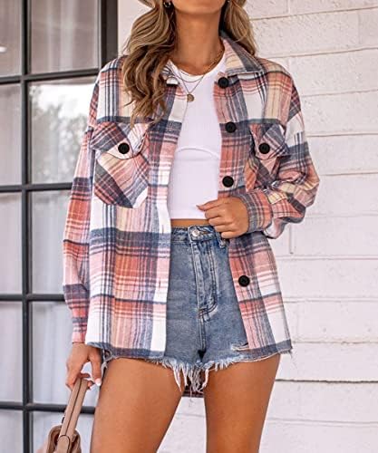 Trendy Queen Womens Flannel Shacket Casual Jacket Plaid Button Down Long Sleeve Shirt Fall Winter Outfits
