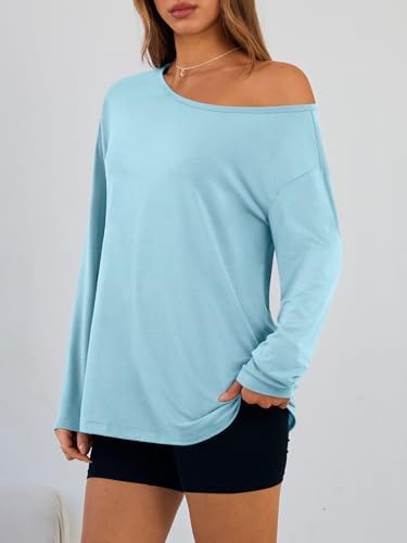 Trendy Queen Womens Off The Shoulder Tops Oversized Tshirts Long Sleeve 2025 Casual Basic Tees